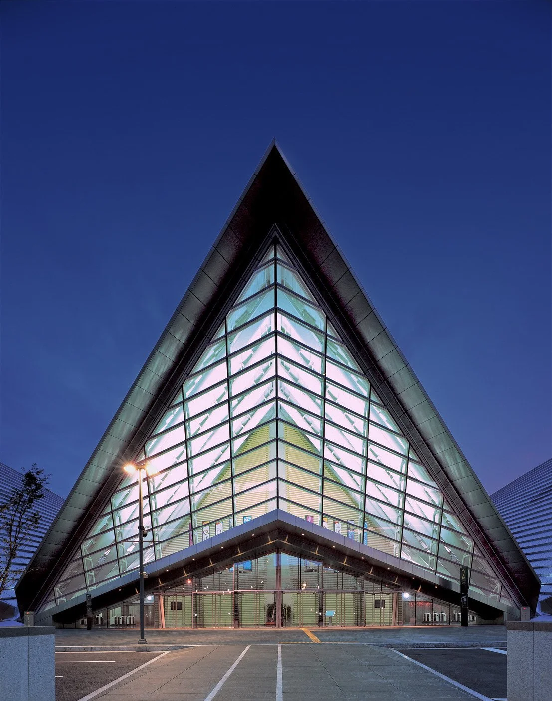 The largest column-free spans (144m) in Asia, it is the landmark for Korea’s new international hub. The structure is made with folded roof planes that houses 645,000sf of exhibition space, 86,000sf of ballrooms, and 50,000sf of meeting and conference rooms.